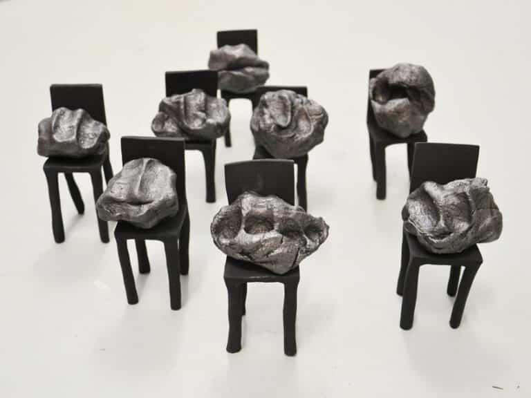 samengesteld beeld van karton, porselein, kalkverf en grafiet. 32 x 25 x 15.