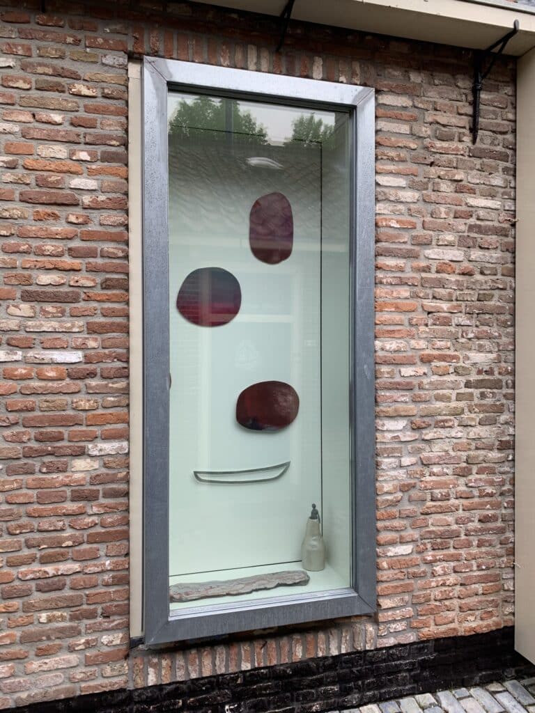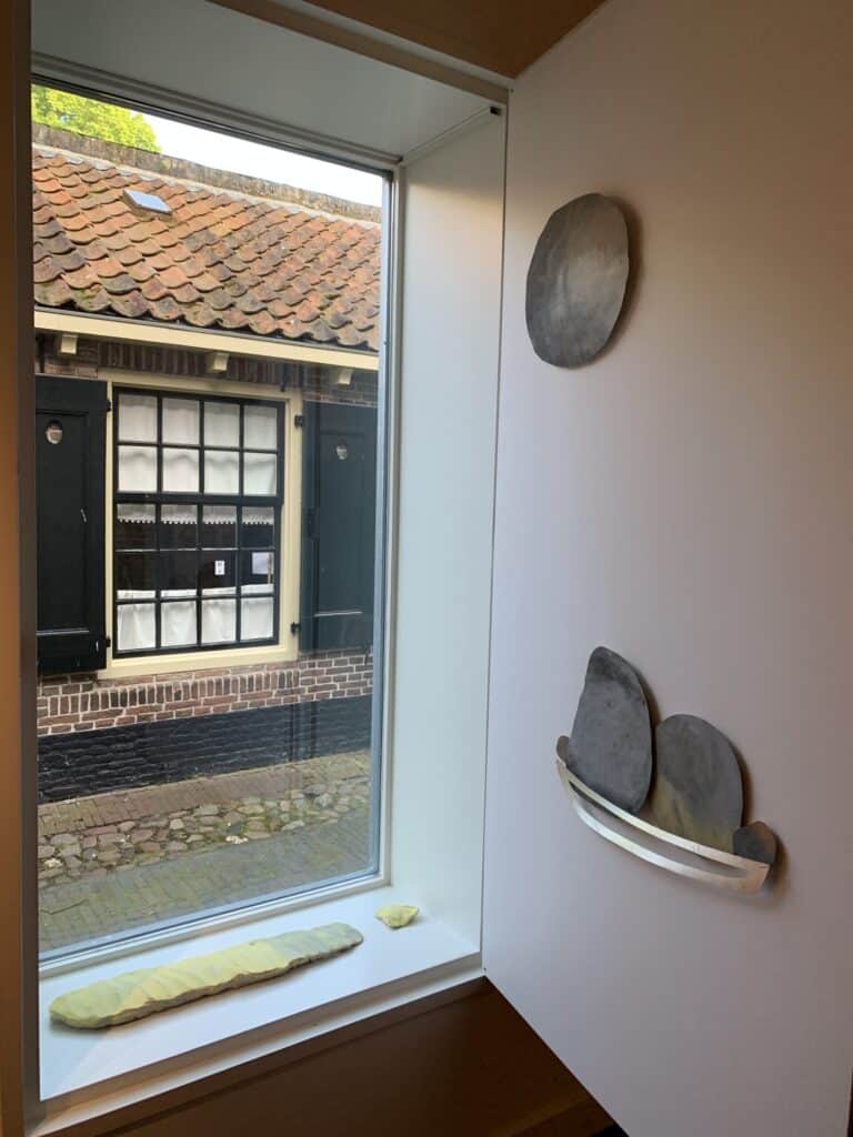 In de buitenvitrines is een installatie te zien dat associerend op het varende Hanzeverleden is ontstaan. De Hanzelieden waren voortdurend buiten en zullen prachtige landschappen en fascinerende luchten gezien hebben. Wat hebben zij in verhalen mee naar huis genomen? Het werk is gemaakt van olieverf op papier, bladziver op karton en ongebakken klei.