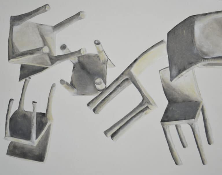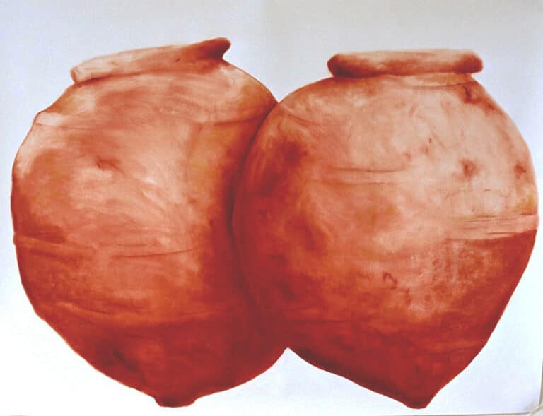 tekeningen uit verschillende periodes in oilstick, conté, kleislib of acryl