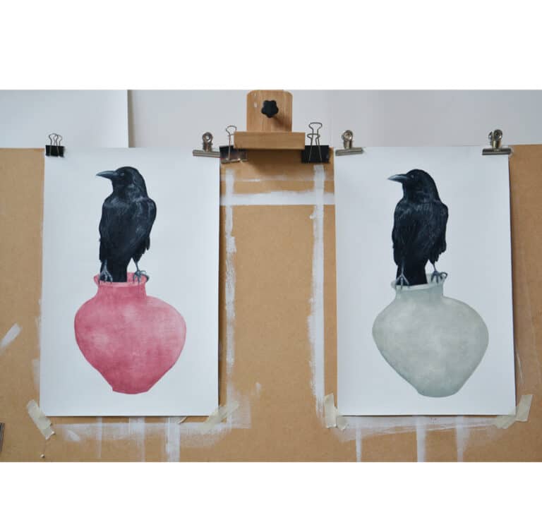 Twee kleine tekeningen. oilstick op papier, 50 x 30 één in particuliere collectie.