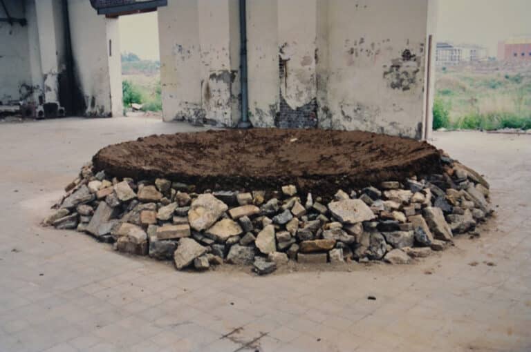 ‘Schaal’ van aardewerk, puin en keramiekscherven, gerealiseerd op het voormalig Sfinx-terrein Maastricht.