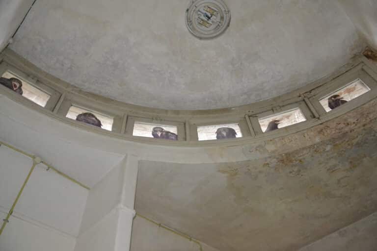 Left place’: in opslag staan hier de beelden die lang geleden gebruikt zijn voor een installatie. Rollecate als gebouw is letterlijk en figuurlijk verlaten, opgegeven door de kunstenaars.