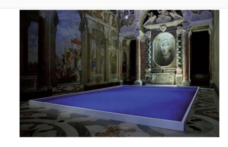 Een gepatenteerd ultramarijn blauw dat zowel de oneindige ruimte in de hemel als in de diepte van de zee vertegenwoordigt. Het is in 2012 geexposeerd in het Palazzo Ducale in Genua met de vloer als drager voor een groot rechthoekig ’tapijt’ van ultramarijn pigmentstof. Een klein schepje hiervan ging met mij mee naar Nederland.