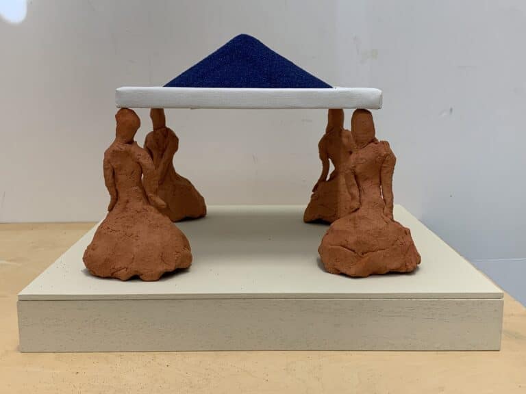 Een klein beetje kostbaar IKB gedragen door 4 terracotta vrouwen.