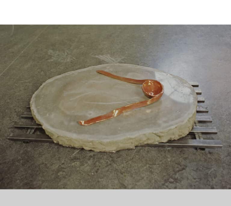 samengesteld beeld van metaal, ferro-cement en keramiek met bronsluster. 60 x 40 x 30