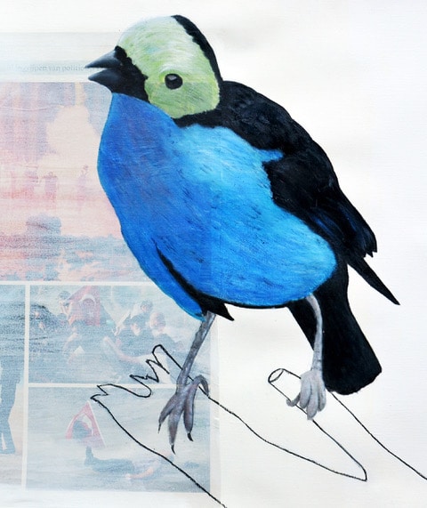 Olieverf op geprepareerd krantenpapier, gesso en houtskool.